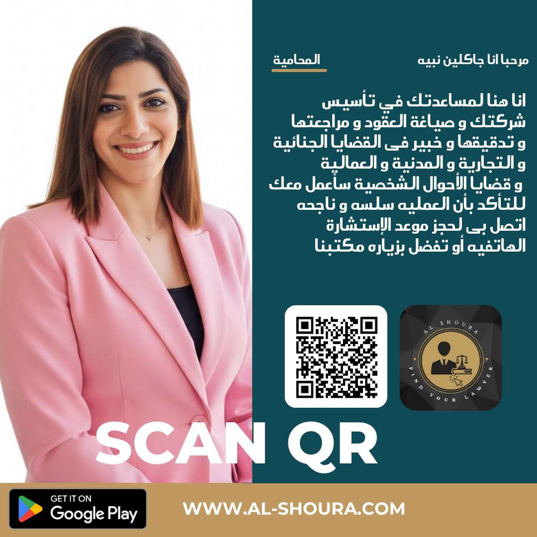 كافه أعمال المحاماه محامية معتمدة ومتخصصة في القضايا الأسرية والجنح والمدني وتأسيس الشركات الملخص المهني: محامية ذات خبرة متميزة تزيد عن 10 سنوات في مجالات متنوعة تشمل: قضايا الأسرة: التعامل مع كافة جوانب قضايا الأحوال الشخصية مثل الطلاق، النفقة، الحضانة، وتوثيق عقود الزواج والطلاق. قضايا الجنح: تقديم دفاع قوي وشامل في القضايا الجنائية ، مع تحقيق معدلات نجاح عالية. القضايا المدنية: تقديم استشارات قانونية متخصصة وتمثيل العملاء أمام المحاكم المدنية لضمان أفضل النتائج. تأسيس الشركات: خبرة في تقديم خدمات تأسيس الشركات بكافة أنواعها وإعداد عقود التأسيس واللوائح الداخلية، بالإضافة إلى تقديم الاستشارات القانونية المتعلقة بالإجراءات التنظيمية والتشغيلية. صياغة العقود: صياغة عقود قانونية محكمة تضمن حقوق الأطراف وتجنب النزاعات المستقبلية. تسجيل الشهر العقاري: خبرة عملية واسعة في توثيق وتسجيل العقود والمعاملات القانونية لدى الشهر العقاري. المهارات الأساسية: قدرة فائقة على تحليل النصوص القانونية وإيجاد حلول مبتكرة. مهارات تفاوض قوية تضمن تحقيق مصالح العملاء. دقة وكفاءة في إعداد وصياغة العقود القانونية. خبرة عميقة في الإجراءات القضائية والتنفيذية. التزام بمعايير الأخلاق المهنية وسرية المعلومات. خبرة شاملة في التعامل مع اللوائح والقوانين المتعلقة بالشركات. الخبرة العملية: تقديم الاستشارات القانونية المتخصصة لأفراد وشركات في مختلف المجالات القانونية. إدارة عدد كبير من القضايا المعقدة بنجاح وتحقيق أحكام لصالح العملاء. تأسيس وإدارة الإجراءات القانونية لتأسيس الشركات الصغيرة والمتوسطة،